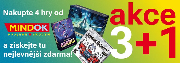 Pokud v období od 3.11. do 9.11.2025 nakoupíte čtyři hry od MINDOKU, tu nejlevnější od nás dostanete zdarma. Jakmile máte zboží v košíku, stačí vložit kód "mindok4" a sleva za nejlevnější položku se vám automaticky načte.