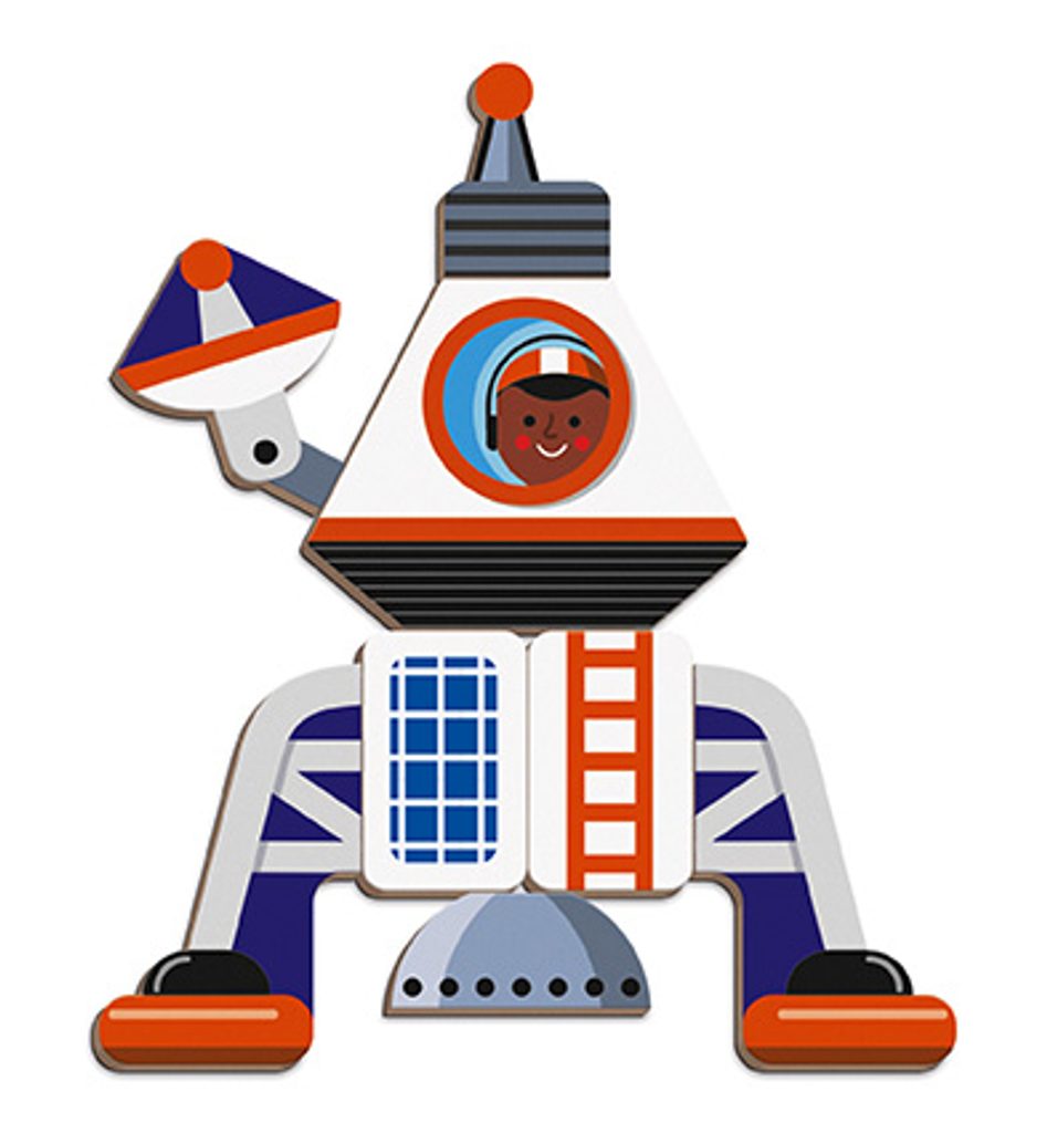 Magnetibook s motivem vesmíru. V balení je 52 magnetek a 18 kartiček s předlohami. Děti si z magnetek vytvoří celou řádku vesmírných lodí. Mohou popustit uzdu své fantazii, odložit předlohy a rozehrát vesmírná dobrodružství.