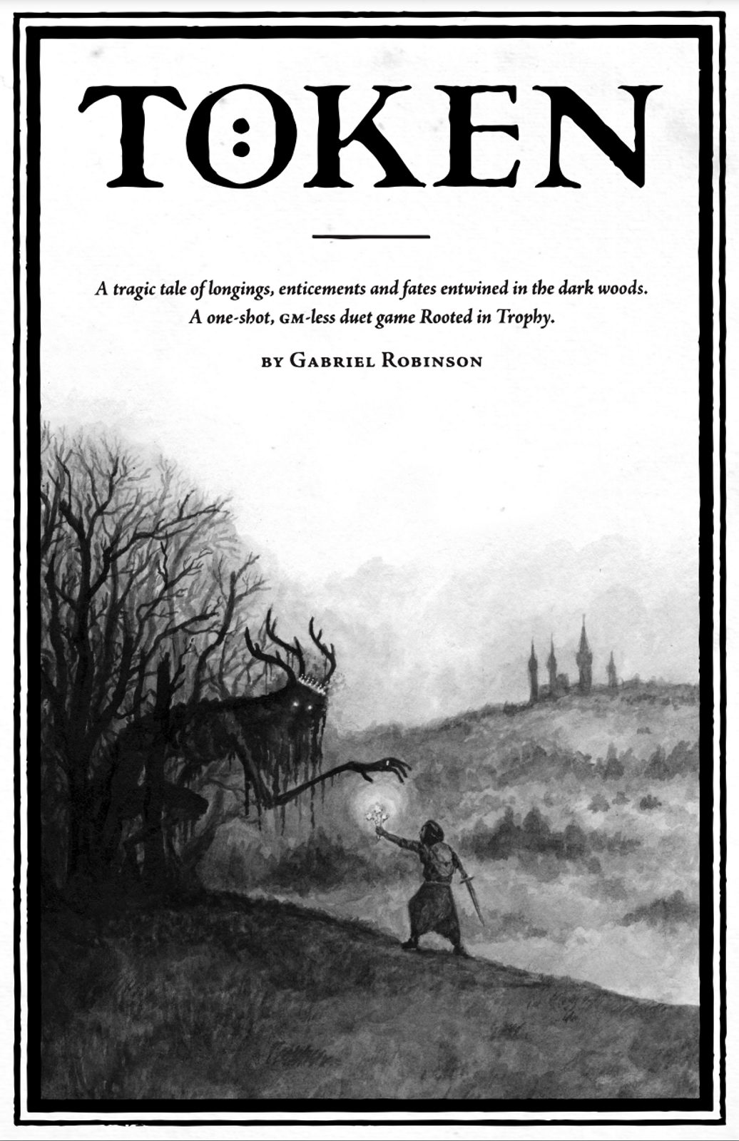 Token je uzavřené RPG dobrodružství pro dva hráče bez vypravěče vycházející z temných pohádkových příběhů a lidových mýtů. Token, neboli symbol zde znamená předmět nebo gesto, které vyjadřuje něco neobsažitelného slovy - oběti, dary, přísliby či něco úplně jiného. Hrát zde budete moci za pátrače, padlého hrdinu s nevyřešenou minulostí či osídlence, který kdysi býval člověkem, ale nyní je nucen se toulat lesem proměněný v příšeru.