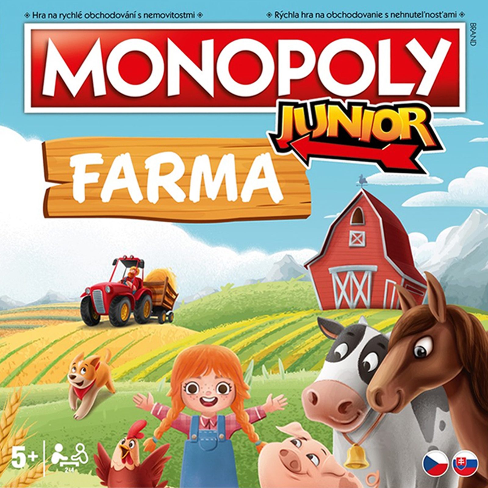 Farma je juniorská verze hry Monopoly s veselým farmářským motivem. Hráči nakupují a spravují zvířata, pole a další části farmy, vybírají nájemné a učí se základům obchodování.