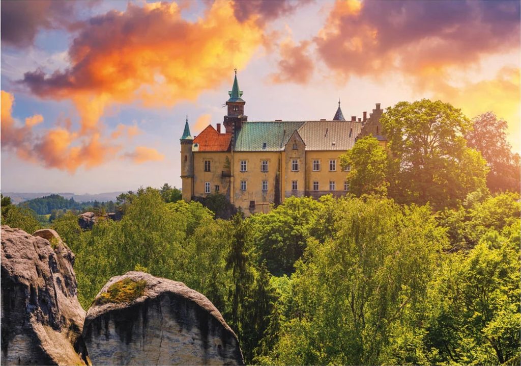 Puzzle Hrubá Skála o velikosti 500 dílků nese fotografii zámku Hrubá Skála, jedné z hlavních dominant Českého ráje.