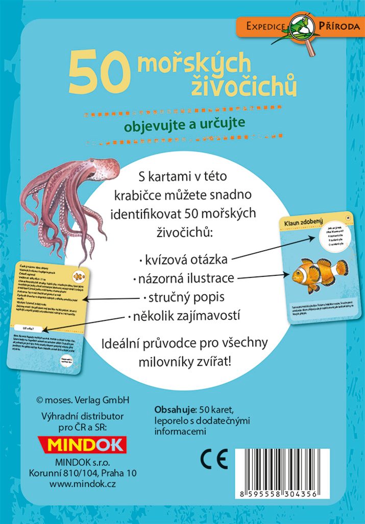 Na kartách z balení 50 mořských živočichů najdete kvízovou otázku, názornou ilustraci, základní informace a také několik zajímavostí. Ideální průvodce pro všechny milovníky přírody!