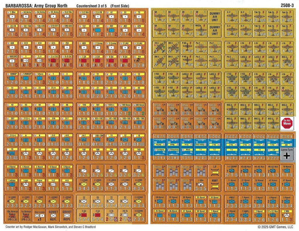 - 1 mapu o rozměrech 43 x 86 cm (A, oboustrannou). Oboustranné listy s mapami k menším scénářům, pravidla, průvodce hrou, pravidla pro námořnictví, nějaké ty tabulky a popisy scénářů.