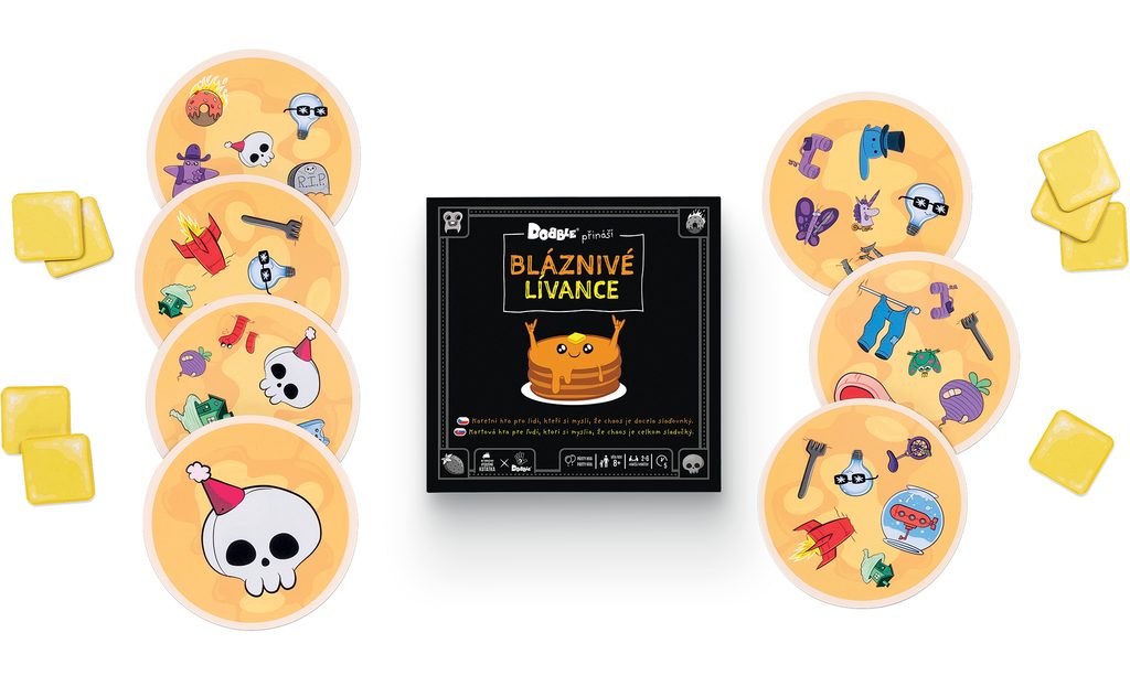 Bláznivé lívance jsou postřehová hra, nikoliv nepodobná Dobblu, v níž hrajete s kartami palačinek s podivnými polevami (od žížalích, přes okurkové po lebkové s párty kloboučkem). Svých palačinkových karet se snažíte zbavit a získat tak voňavá máslíčka.