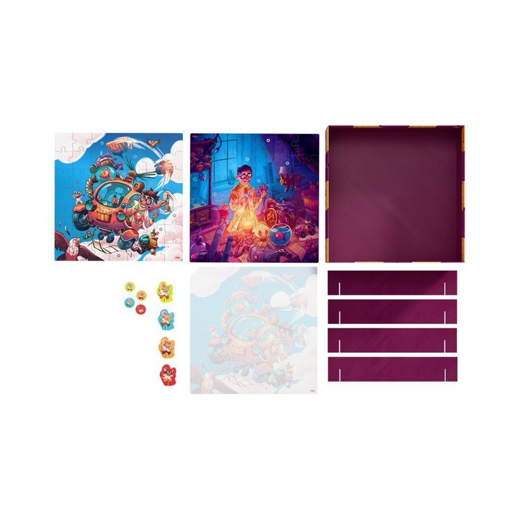Vítejte v dílně profesora Wackyho, kde se svým týmem myšek vymýšlí ty nejoriginálnější vynálezy. Momentálně pracují na létajícím stroji - bláznivém vrtulníku. Naléhavě ale potřebují pomoc. Dokážete šikovně umístit dílky skládačky a posunout svou myšku co nejvíce vpřed? Pak jste jasným vítězem.