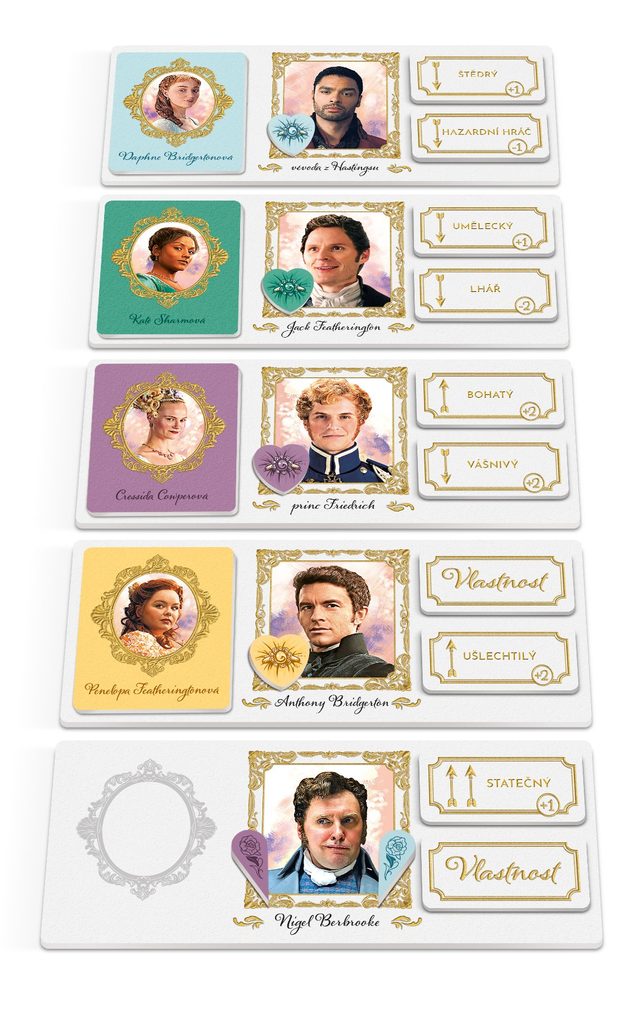 Hra Bridgertonovi: Hra z vyšší společnosti obsahuje: