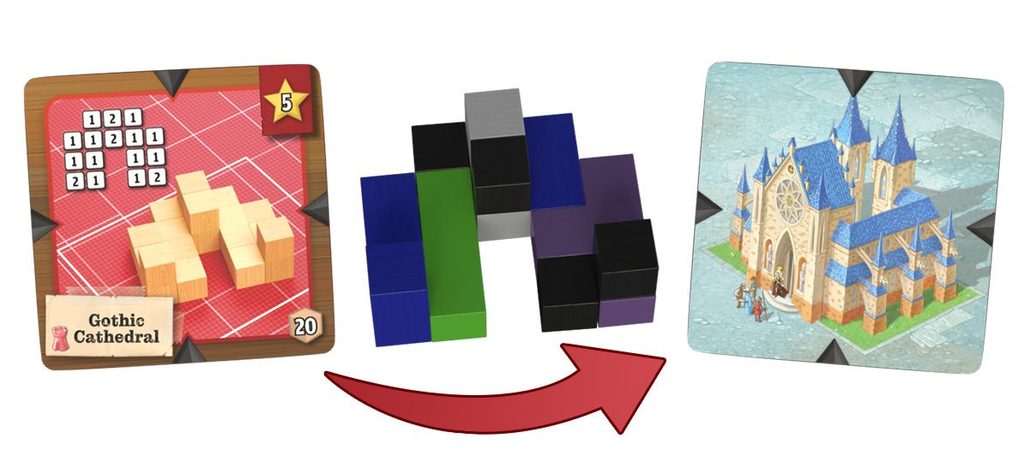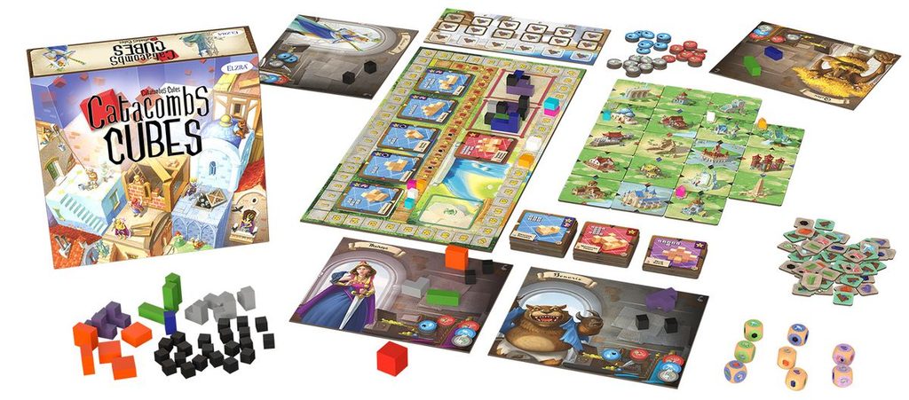 Catacoms Cubes je další z her zasazených do světa Catacoms. Využívá tetrisové dřevěné dílky, které hráči těží a následně z nich dle vzorů na kartičkách staví budovy. Kartičky s budovami pak přidávají do společně budované vesnice, až vytvoří mřížku předepsané veliosti.