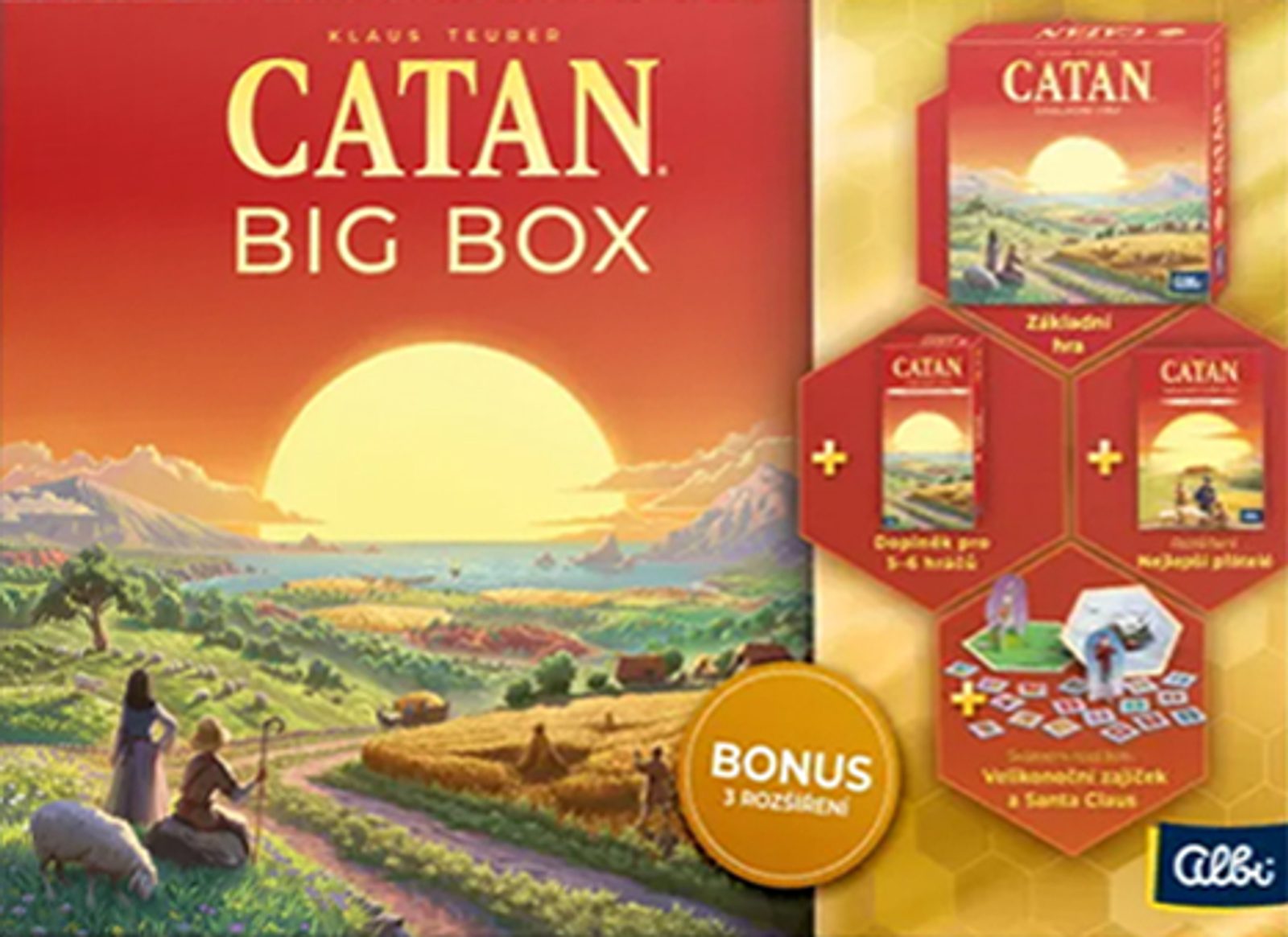 Velký vstup do světa Osadníků z Katanu. Catan: Big Box, to je základní hra, rozšíření pro 5-6 hráčů a nové scénáře v jednom balení.