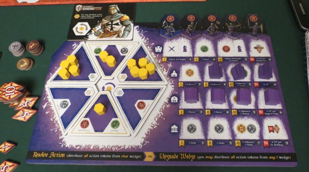 Crusaders: Thy Will Be Done je hra využívající mechanismy známé ze hry Kalaha a spojuje je s prováděním akcí skrze systém rondelu. Ten má každý hráč svůj, bude ho možné v průběhu hry vylepšovat a bude stát za veškerými aktivitami, které ve hře budete moci provádět. Speciální schopnosti k ovládání vašeho rondelu získáte od své frakce a vaši herní strategii zase budou určovat budovy, které postavíte.