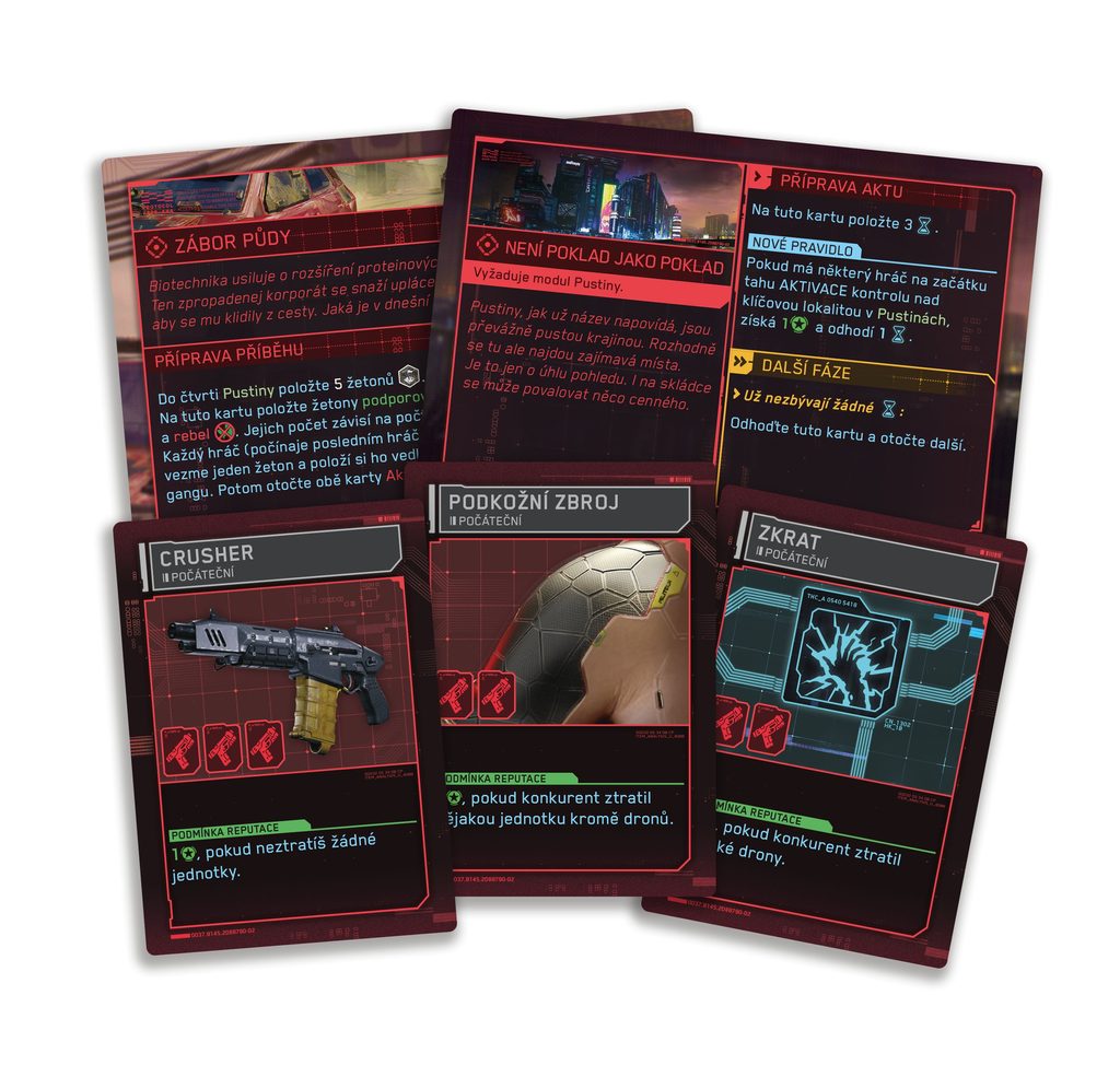 Rozšíření Rodiny a psanci pro hru Cyberpunk 2077 přidává k hrací desce nový okrsek (Pustiny), jeden zbrusu nový příběh a dva další gangy (Aldecaldos a Wraiths). Navyšuje navíc počet hráčů na pět.