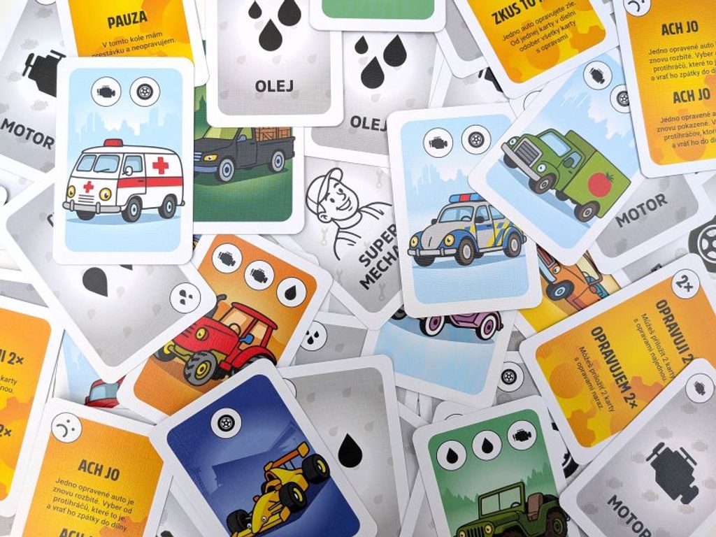 Další, prosím: Autoservis je svižná karetní hra pro malé milovníky aut. Opravujete auta, občas vám někdo nějaké šlohne nebo se zase pokazí. Vyhrává nejlepší mechanik.
