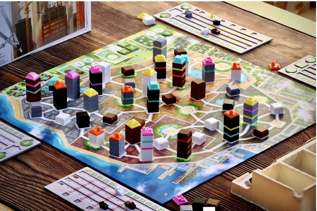 Přestavba centra je v plném proudu a vy jste získali zakázku na všechny nové mrakodrapy: to znamená nové stavby, lákavé bonusy, a pokud všechno dobře dopadne, taky balík peněz. V rodinné hře Do oblak se pokusíte být nejbohatším hráčem, který dokázal příležitost přestavby města nejlépe vytěžit.