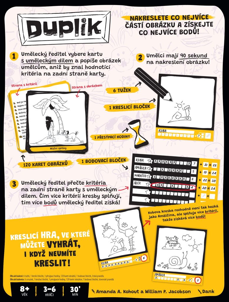 Duplik je malovací párty hra, v níž vůbec nemusíte umět malovat. Úkolem hráčů je totiž především dodržet malovací pokyny od uměleckého ředitele.