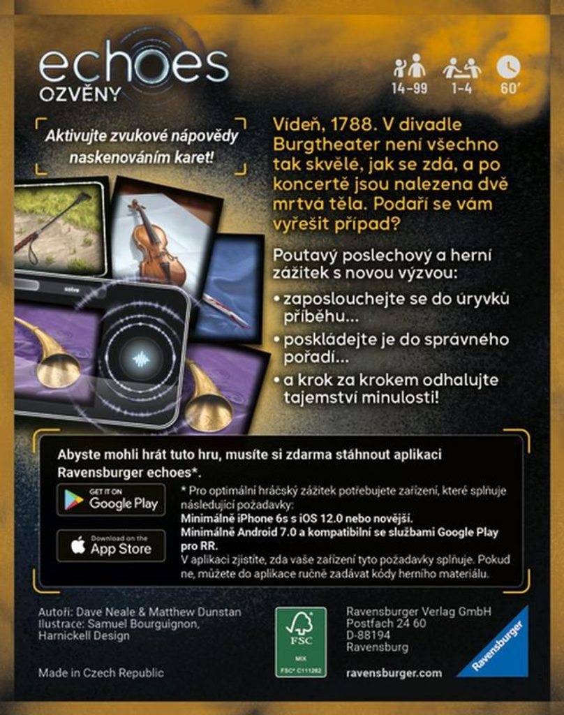 Ke hře je nutné stáhnout zdarma aplikaci Ravensburger echoes, která je kompletně namluvená v češtině – vypravěč Václav Neužil.