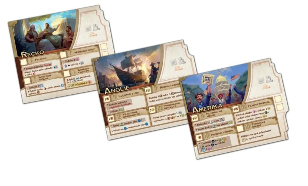 V průběhu tří epoch se utkáte s ostatními vůdci o to, která civilizace získá největší prestiž. Čeká vás období starověku, středověku i novověku až po současnost.