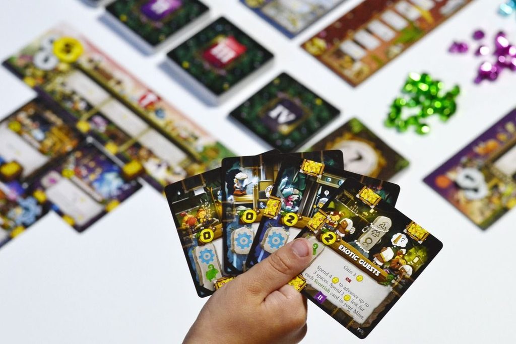 Do svého tabla budete postupně zahrávat karty a budovat tak vlastní důl. Začnete pěkně na povrchu a postupně se budete dostávat pod zem. Pokaždé, když do dolu přidáte kartu, aktivujete nejen ji, ale i všechny karty nad ní. To přináší opravdu hezká komba. Jednotlivé karty patří k šesti frakcím a nabízí různé strategie. Hráči jednotlivé frakce ve svých dolech míchají.
