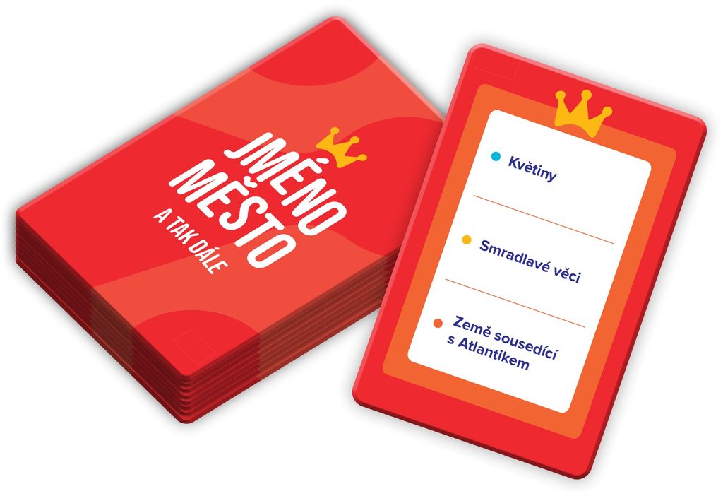 Jméno, město a tak dále je mix karetní party hry a všem dobře známé slovní hry ze školních lavic. Zbavte se z ruky karet s písmeny vymýšlením slov v roztodivných kategoriích. Znáte sport na R? Značku piva na Z? Animovanou postavičku na E? Přísadu na pizzu na O? Snadné, že? Jen do té doby, než někdo zahraje akční karty, které dokážou celou hru pěkně zamotat.