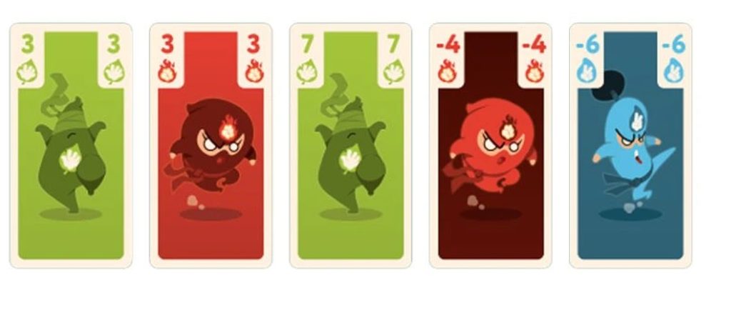 - 48 karet s čísly od -6 do 10 ve třech barvách – každá karta je jiná a přináší nové možnosti