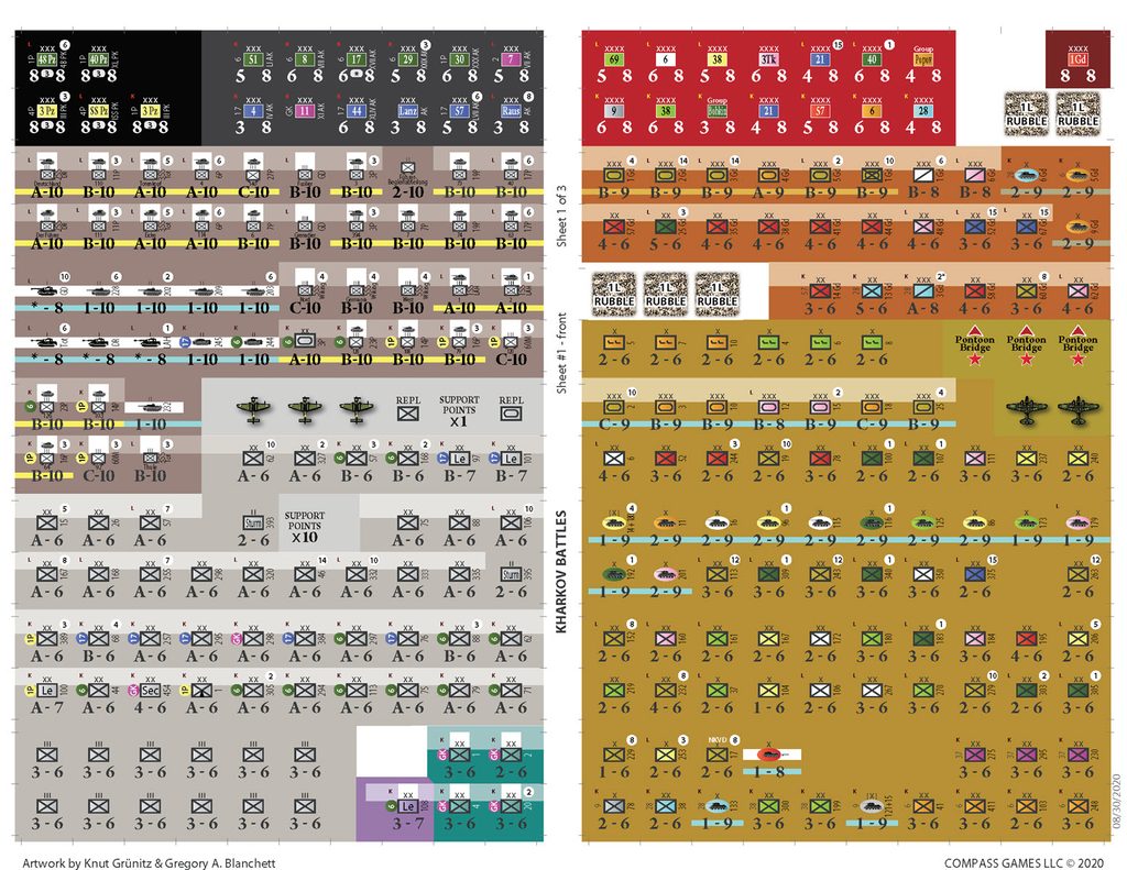 Vzhledem k povaze obsažených bitev je Kharkov Battles ideální vstup do systému Fall Blau, protože má na hráče menší časové i prostorové nároky. V balení nalezeme ještě přídavnou mapu, kterou lze napojit na mapy právě z Fall Blau, aby si případně hráči mohli obě hry spojit do jedné velké kampaně a odehrát tak kompletní březen roku 1943. Pro tuto možnost zde jsou i bonusové žetony a detailní tabulky posil. Nalezneme zde čtyři scénáře - tři nezávislé a jeden hratelný pouze společně s Fall Blau.