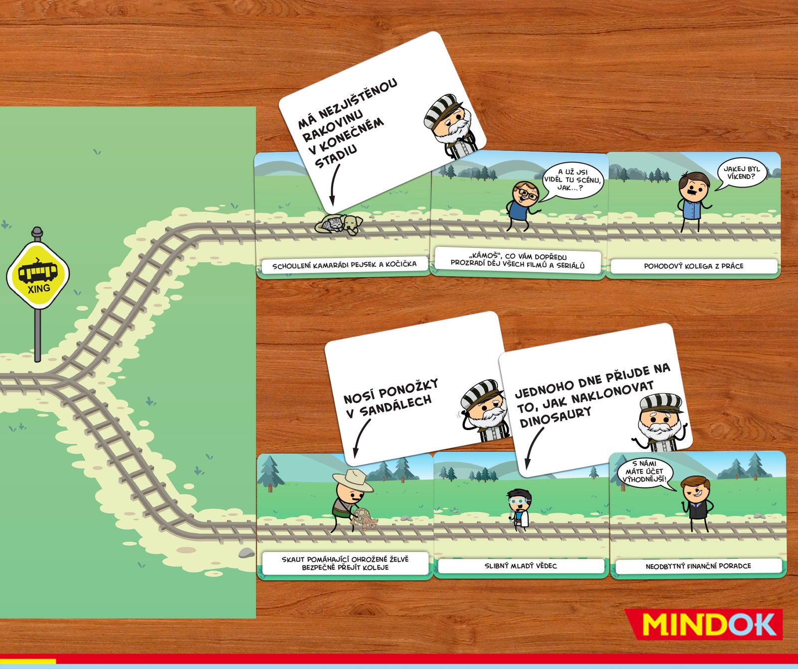 Komu zvoní tramvaj je morbidní párty hra založená na morálních dilematech, vraždící tramvaji a ilustracích oblíbeného webkomiksu Cyanide & Happiness.