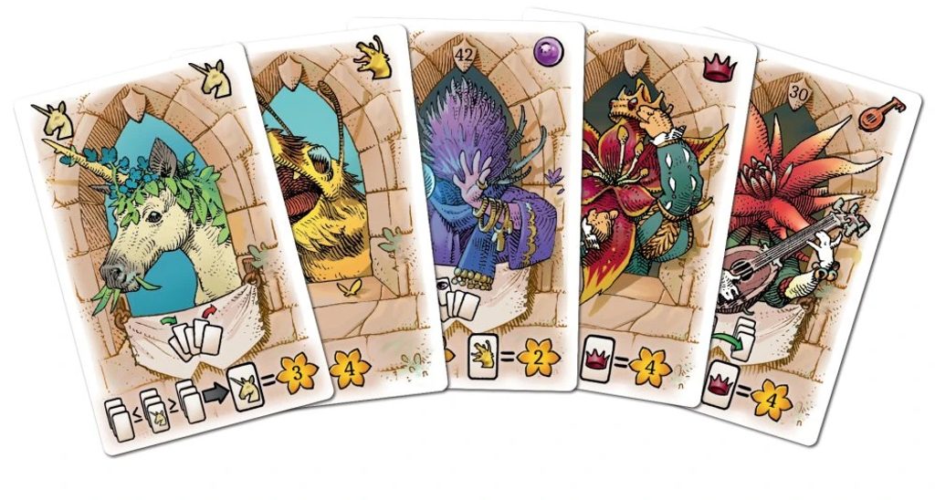 V království nastává éra rozkvětu. Je jen na vás, jak si jednotlivé květy povedou. Hráči v každém tahu současně vybírají jednu kartu z ruky, kterou přidají do společně vykládaného tabla. Čím více karet dané postavy se dostane do hry, tím cennější se tato postava stává.