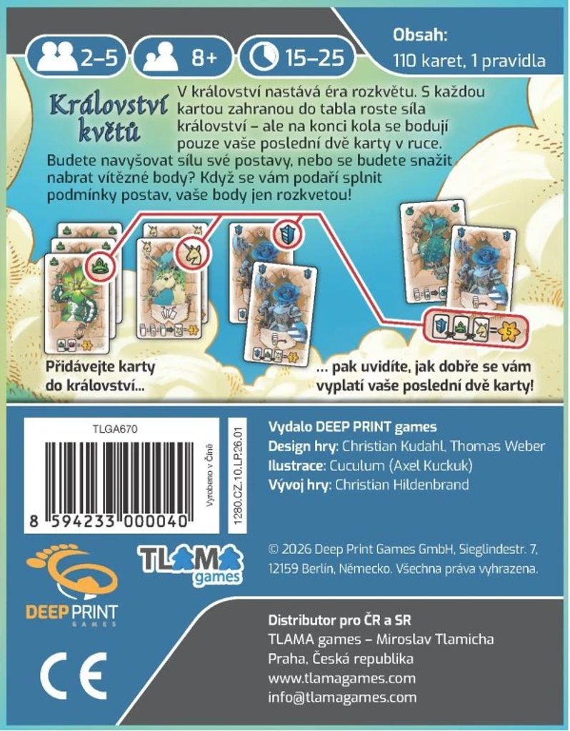 Království květů je strategická karetní hra plná podivných květinových postav. Budete navyšovat sílu své postavy, nebo se budete snažit nabrat vítězné body? Když se vám podaří splnit podmínky postav, vaše body jen pokvetou.