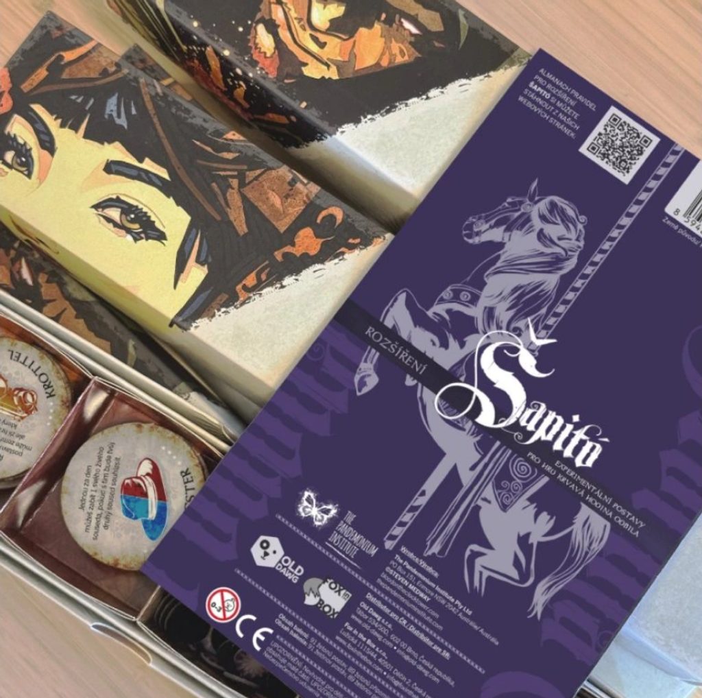Šapitó je rozšíření pro společenskou dedukční hru Krvavá hodina odbila, které přináší kolekci 73 experimentálních postav a otevírá prostor pro ještě divočejší a nepředvídatelnější partie.