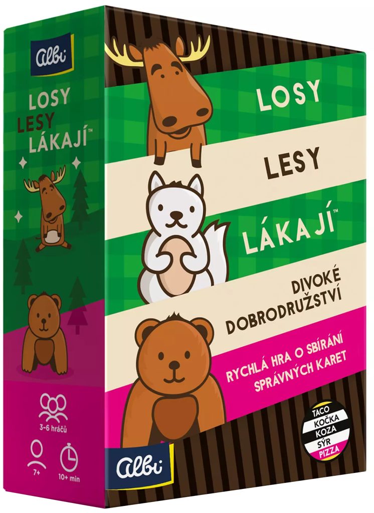 Losy lesy lákají jsou variací na oblíbenou párty hru Taco, kočka, koza, koza, sýr, pizza. Tentokrát se vydáte na zábavnou jízdu po severských krajinách. Na dobrodružství plné lesů, medvědů, yettiů a lavin jen tak nezapomenete.