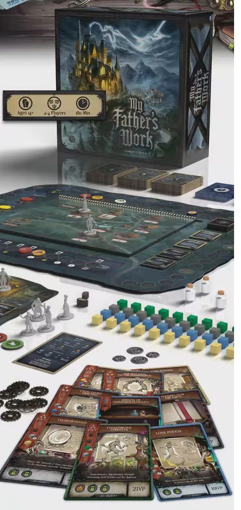 Ve hře My Father's Work se hráči stanou vzájemně soupeřícími, pološílenými vědci. Každému z nich byla svěřena stránka z deníku jejich mrtvého otce a obrovské sídlo, jako dělané pro provádění ďábelských experimentů. Jejich dokončování budou získávat body, ale krom toho také i tím, že budou pomáhat městu, vylepšovat si své strašlivé paláce a v konečném důsledku hlavně tím, že dokončí ultimátní dílo svého otce.