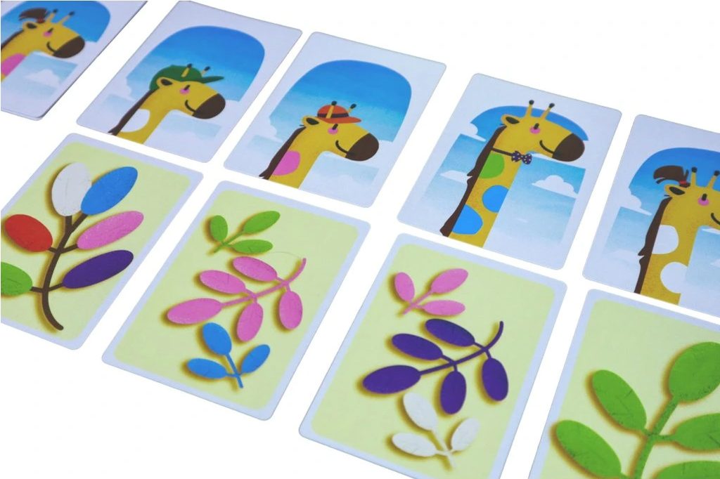 Na každé kartě je hlava žirafy s 1, 2 nebo 3 skvrnami na krku, které představují, co žirafa jí. Na rubu těchto karet jsou 1, 2 nebo 3 listy různých barev. Hráči se snaží popadnout kartu s hlavou žirafy v naději, že do konce kola najdou potřebné listy pro její potravu. Pokud se žirafa nají, její krk se prodlouží. Na konci hry vyhrává žirafa s nejdelším krkem.