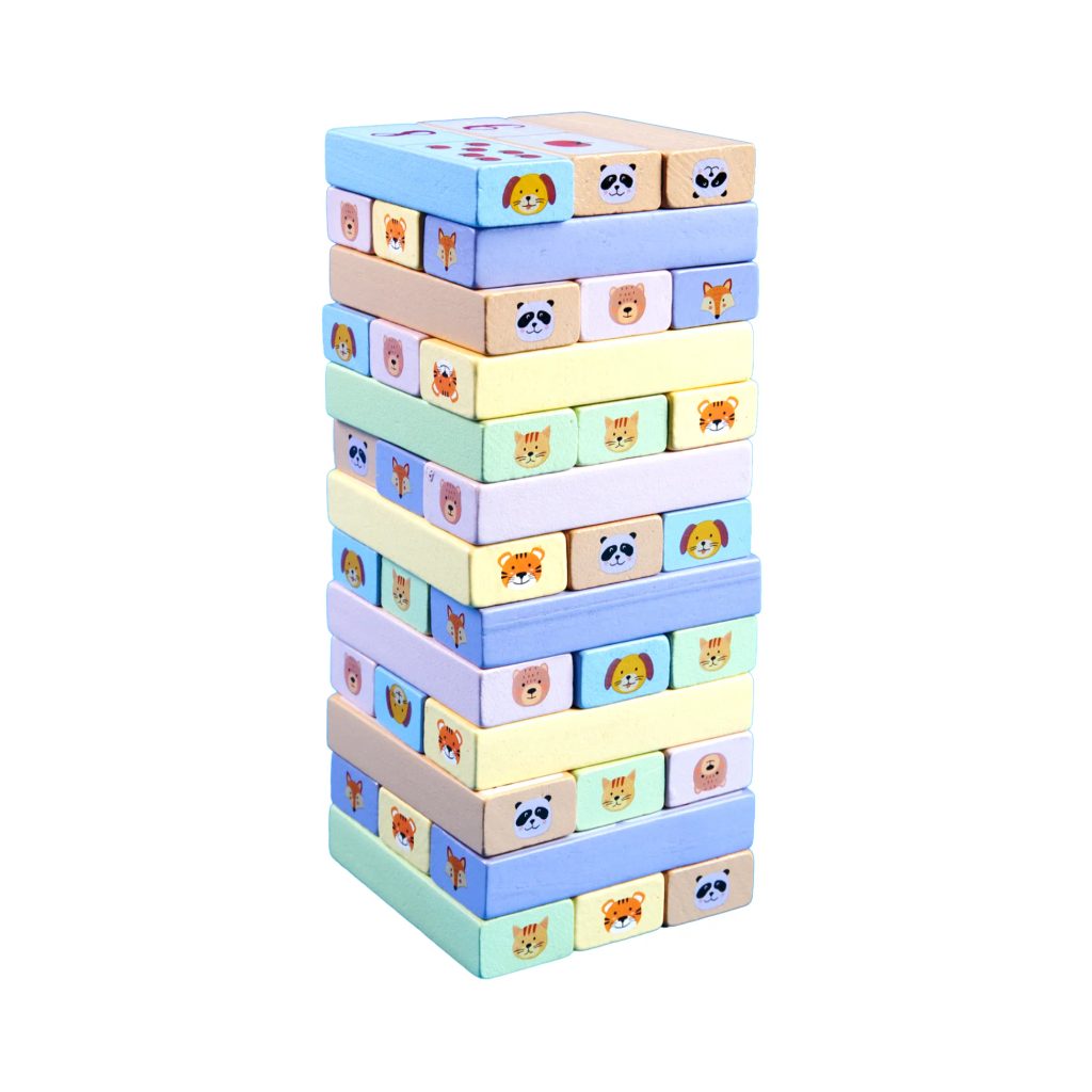 Dřevěná Obrázková věž s dominem nabízí 9 her pro děti od 3 let. Rozvíjí motoriku, barvy i počítání a zaručí zábavu pro celou rodinu.