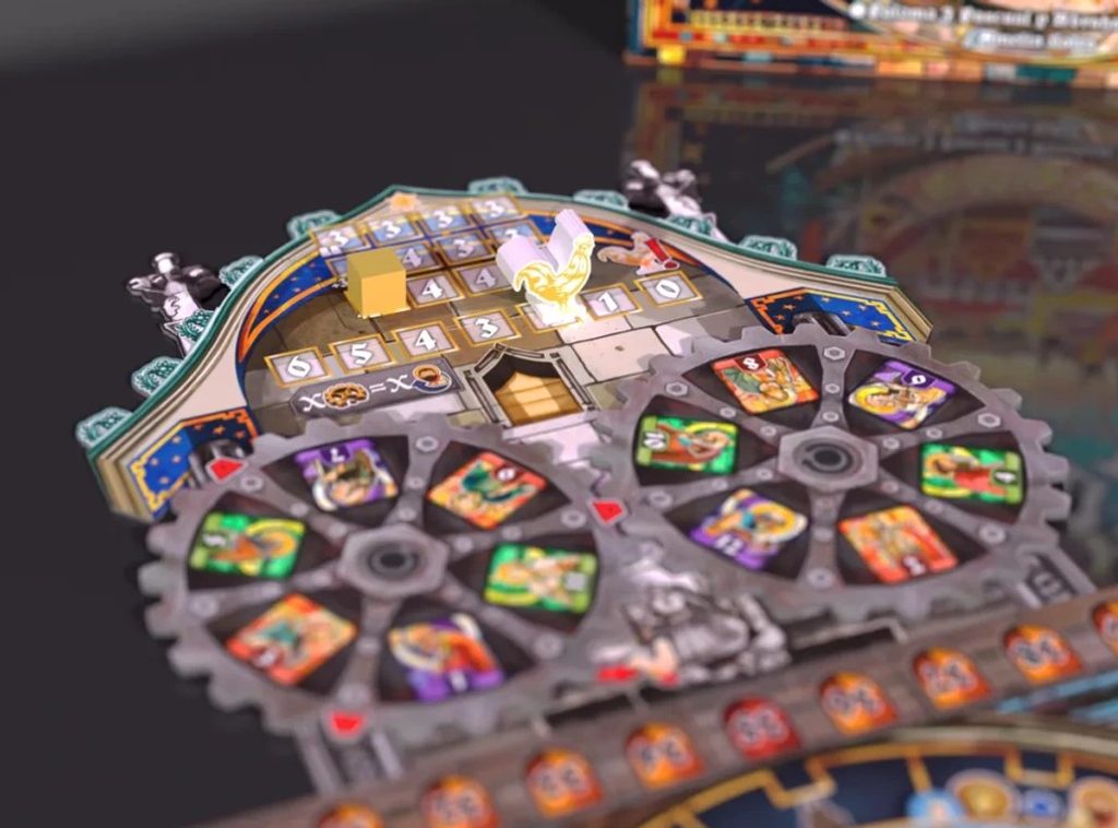 • obecné komponenty: 1 herní plán, 1 otočná osa, 1 základna ciferníku orloje, 1 astronomický ciferník, 1 žeton Měsíce, 1 deska Pochod apoštolů, 3 stříšky orloje, 2 soukolí apoštolů, 3 plastové cvočky os (1 náhradní), 1 zlatý kohout, 1 ukazatel kola, 1 malíř, 12 sekcí cisiojánu kalendária, 12 lunárních kruhů, 6 blokátorů měsíců, 12 zvěrokruhů, 6 blokátorů zvěrokruhu, 1 velký ciferník pro finální výstavbu kalendária, 2 žetony kladiv, 18 pomocníků (3 od každého typu), 24 svitků s červenou pečetí, 6 královských svitků s modrou pečetí, 6 vitráží mistrných dovedností, 9 vitráží běžných cílů (3 od každé barvy), 9 bonusů běžných cílů (3 od každé barvy), 21 karet dílny, 6 karet kladiva, 8 karet počátečních surovin, 4 referenční karty dodatečných akcí, 15 žetonů zlata, 20 žetonů barvy, 20 žetonů dřeva, 20 žetonů železa, 18 mincí, 1 pytlík