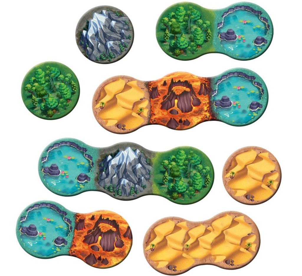 Dílky krajiny znázorňují váš postup při průzkumu ostrova. Typy krajiny, které na dílku najdete, určují, jaké zde můžete postavit budovy či chrámy. Premýšlejte proto bedlivě, kam dílek umístíte. Utvoříte-li skupinu políček stejného typu krajiny, přilákáte pozornost titána a budete moci využít jeho služeb. Na jednom typu krajiny – vulkánech – sídlí bájná monstra. Pokud je dokážete porazit, získáte z nich kořist, což vám ve hře může přinést značný náskok. Nedají vám však svou kůži lacino - souboj s monstrem vás může stát cenné hoplíty či možnost věnovat se v daném tahu rozvoji své infrastruktury.