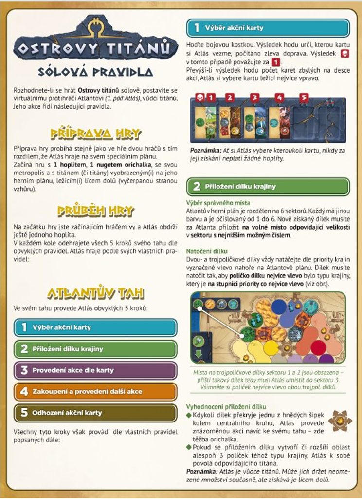 Sólové rozšíření strategické hry Ostrovy titánů, které přináší nový unikátní oboustranný herní plán pro automatického hráče a pravidla pro sólovou hru.