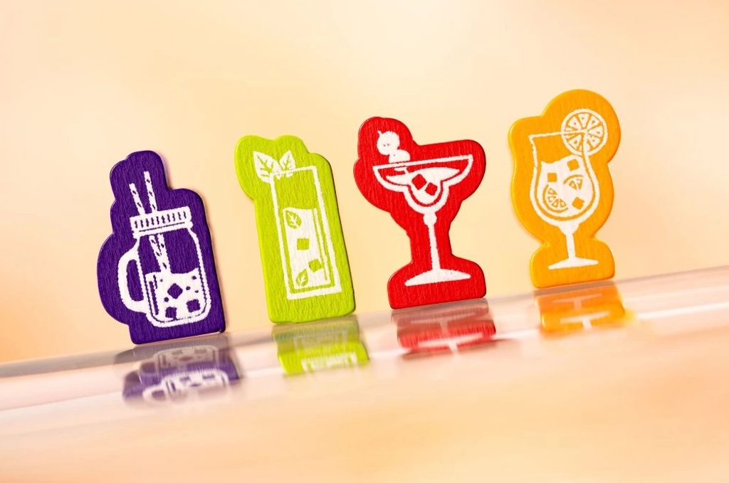 Ale ten nejrychlejší způsob, jak vyhrajete, je umístit 4 své žetony koktejlů do řady a vytvořit tak slavnou Piña Kostkádu. Pak se stanete vítězi okamžitě. Podtácky ve hře představují reálné ingredience (kromě alkoholu). Můžete si tedy po hře namíchat i svůj vítězný koktejl.