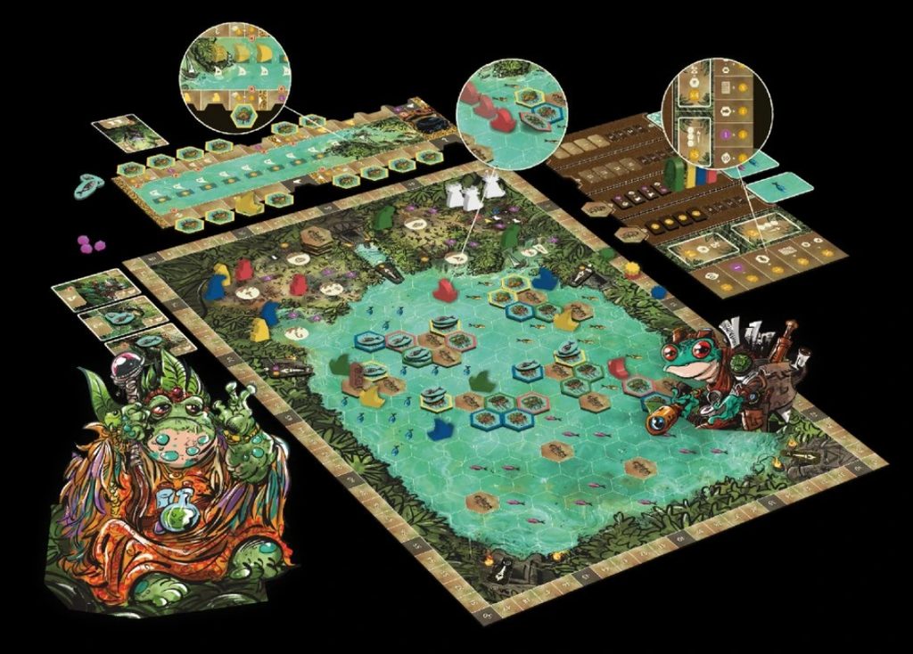 Ve hře Posvátná bažina zakládají klany nové osady, plují mezi ostrovy a snaží se získat co nejvíce vítězných bodů. Herní plán tvoří síť ostrovů se svatyněmi, které ovlivňují bodování a vytvářejí přirozená centra zájmu.