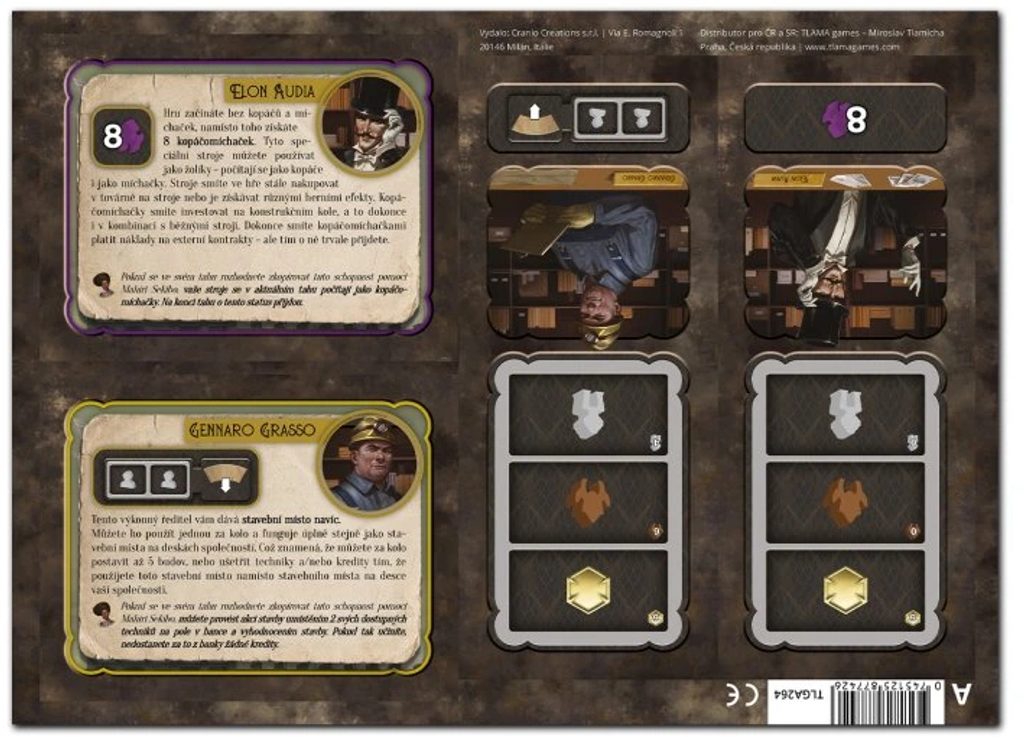 Elon Audia - začínáte bez kopáčů a míchaček, namísto toho získáte 8 kopáčomíchaček. Tyto speciální stroje můžete používat jako žolíky – počítají se jako kopáče i jako míchačky. Stroje smíte ve hře stále nakupovat v továrně na stroje nebo je získávat různými herními efekty. Kopáčomíchačky smíte investovat na konstrukčním kole, a to dokonce i v kombinaci s běžnými stroji. Dokonce smíte kopáčomíchačkami platit náklady na externí kontrakty – ale tím o ně trvale přijdete.
