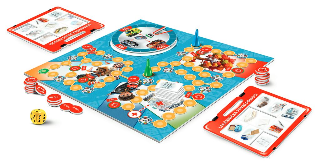 První pomoc je týmová hra, v níž se děti naučí jak správně reagovat při nehodě, přivolat správné záchranné složky, poskytnout první pomoc nebo se orientovat v krevních skupinách.