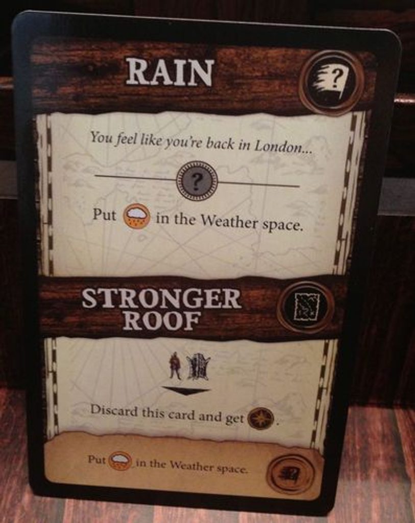 - reagovat na událost - na začátku každého kola je tažena jedna karta události, která s sebou většinou nese nějaký nepříjemný efekt. Navíc je tato karta odložena na hrací desku, a pokud ji včas "nevyřešíte", vyhodnotí se eventuálně i její dodatečný (zpravidla ještě méně žádoucí) efekt.