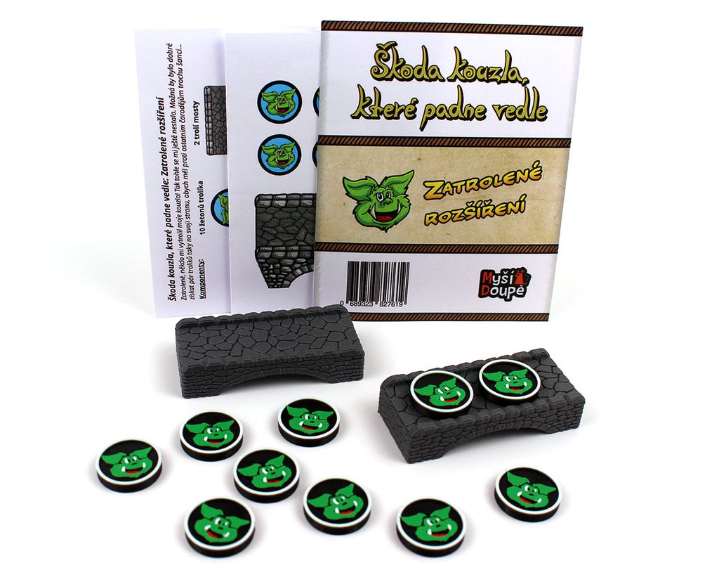 Zatrolené rozšíření pro hru Škoda kouzla, které padne vedle přináší do hry žetony trolíků a mostů a vzniklo ve spolupráci s deskoherními stránkami Zatrolené hry.