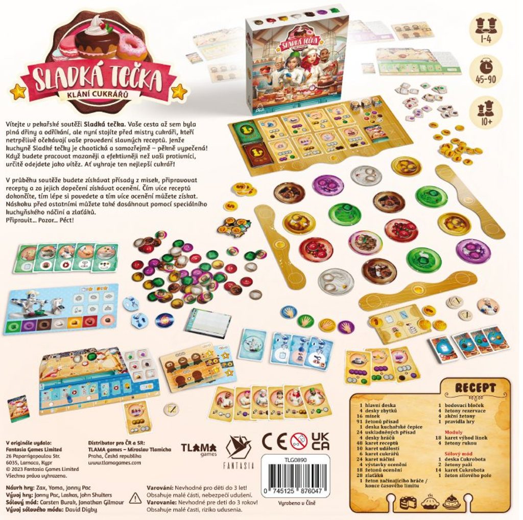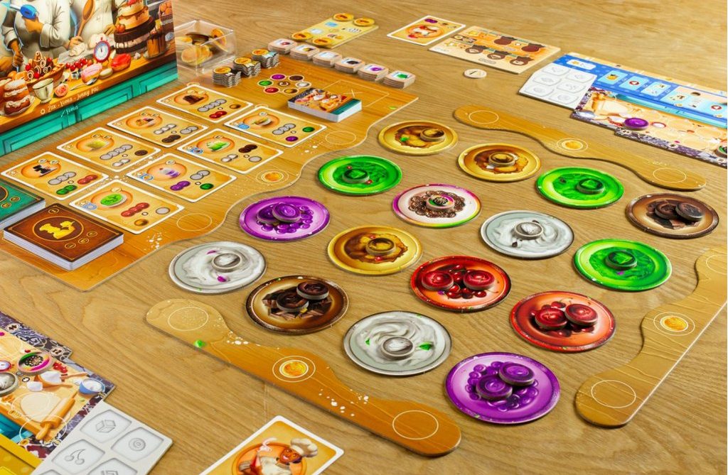 Sladká tečka: klání cukrářů je rodinná strategická hra o pečení dezertů z ingrediencí, které získáváte z misek a přitom vytváříte nepořádek do sousedních misek. Navíc musíte být schopni suroviny uskladnit a následně z nich dle receptů upéct, co je třeba.