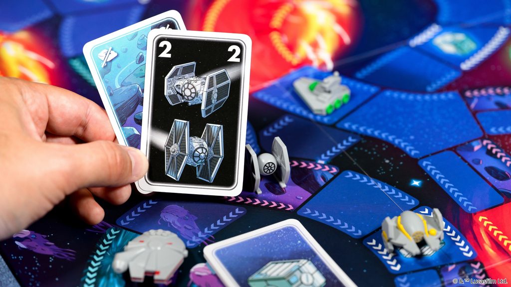Ve hře se ujmete dvojice ikonických lodí ze světa Star Wars – například Millenium Falcon, Hvězda smrti nebo X-wing. Vaším úkolem je dostat obě lodě svého týmu jako první do cíle. Hráči si v každém tahu vybírají kartu pohybu a podle její barvy a hodnoty posunou loď příslušné barvy. Protože karty držíte v ruce náhodně, často budete muset pohnout i soupeřovými loděmi, nebo pomoci spoluhráči.