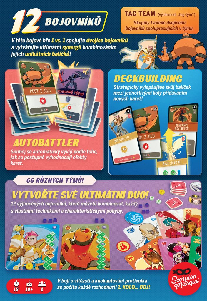 Tag Team je karetní hra ve stylu bojových videoher. Kombinujete v ní jedinečné balíčky dvou bojovníků, kteří v průběhu několika kol bojují proti soupeři.