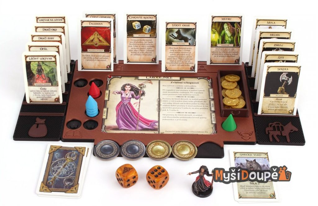 Deska hráče má místo na kartu hrdiny, ukazatele síly, vůle a života, zlato, pět žetonů osudu, čtyři předměty a čtyři pomocníky, balíčky karet kouzel a trofejí. V případě ukazatelů síly a vůle jsou dvě místa navíc, pro případné označení síly a vůle přidané předměty či pomocníky pro všechny účely a nebo pouze pro souboj, díky čemuž nebude třeba řešit malou matematickou úlohu před každým testem či soubojem.