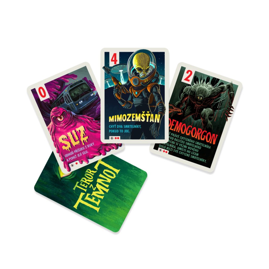 V karetní hře Teror z temnot se stenete šíleným vědcem, který potřebuje smrtelníky pro své pokusy. Armáda příšer očekává vaše rozkazy. Pochytejte ty nejcennější smrtelníky a vyhrajte, ale pozor – někteří smrtelníci se nenechají chytit jen tak bez boje.