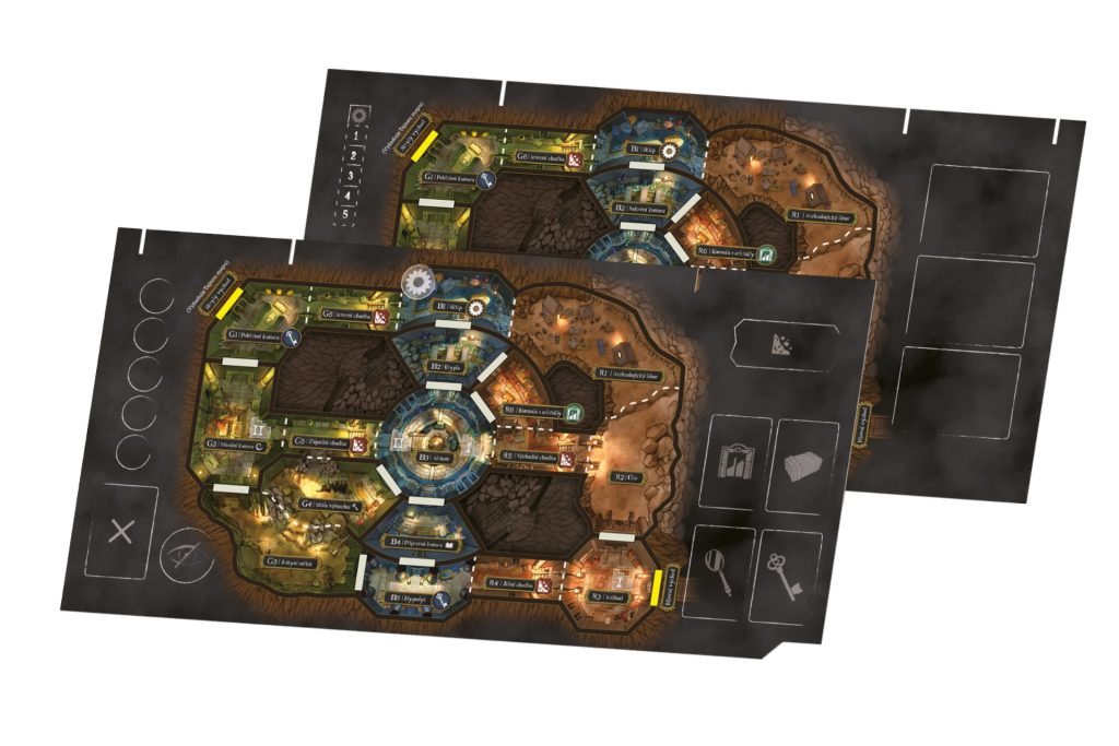 Hrobka se nachází hluboko pod horami, kde může díky nestabilnímu geologickému podloží docházet k závalům hlavních chodeb. Proto je potřeba, aby obě strany dopředu pečlivě plánovaly své kroky. Přeživší dále mohou pátrat po artefaktech obdařených tajemnou silou, které jim mohou na útěku pomoci. Za oponou temnoty leží jak příležitosti tak nebezpečí...