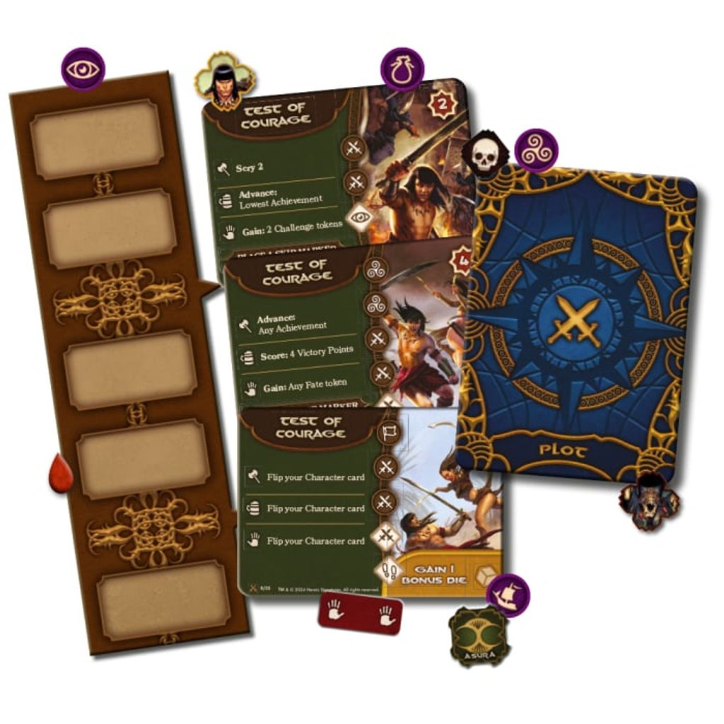 Nechť je vaše čepel ostrá a srdce bije jako zvon, protože v tomhle boji vítězí jen ti bez bázně a hany. The Adventures of Conan je asymetrická, semi-kooperativní kostková hra naplněná dobrodružnými výpravami, magií a velkolepými souboji. To vše zasazené do známého fantasy světa v jeho Hyboriánském období. Jak v ní budou hráči putovat krajinou za dobrodružstvím, čeká je ovládaní Conana, jeho spojenců i nepřátel skrze využívání speciálních kostek, které budou po dobu hraní na výběr. Conan bude muset spolupracovat se svými spojenci, ale přitom nesmí zapomínat, že mu předně jde o jeho osobní cíle pokud chce zvítězit. Jeho nepřátelé zatím budou vytvářet plán k jeho pokoření, což znamená kladení různých pastí, které mu budou překážet na jeho cestách.