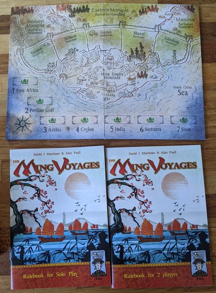 Ve hře The Ming Voyages se jeden z hráčů stane císařem dynastie Ming, který se bude snažit uskutečnit všech sedm cest za poklady. K tomu však ještě bude muset bránit hranice Číny před nájezdy barbarů. Druhý pak bude mít pod kontrolou tři rozličné barbarské frakce, které se budou snažit usadit na hranicích s Čínou. zde může dojít k bitvám, která hráči budou řešit pomocí trojice kostek, na kterých se budou snažit naházet trojičky, dvojičky či prostě lepší čísla než protivník. Záložní karty pak budou poskytovat potřebné přehozy.