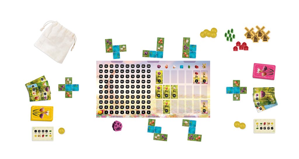 Třpytivé květy jsou rodinná hra, v níž budete pěstovat holandské tulipány. Jako ambiciózní zahradníci soutěžíte o to, kdo vypěstuje nejrozmanitější směsici tulipánů. Pečlivě vybírejte dílky a strategicky rozmisťujte ikonické větrné mlýny, robustní stodoly a pilné pracovníky, abyste vytvořili harmonickou a hodnotnou krajinu.