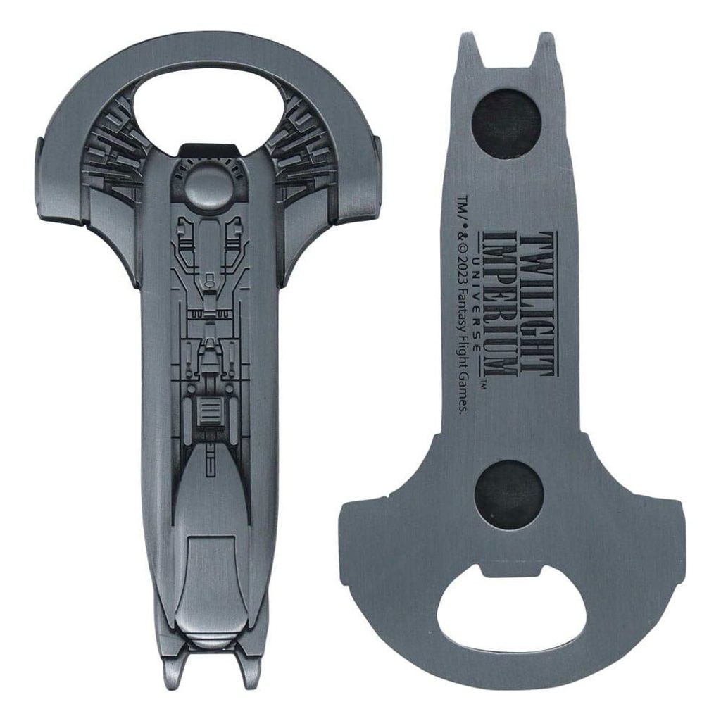 Fanouškovský otvírák na lahve Twilight Imperium. Rozměry má cca 10 x 5 cm, je magnetický.